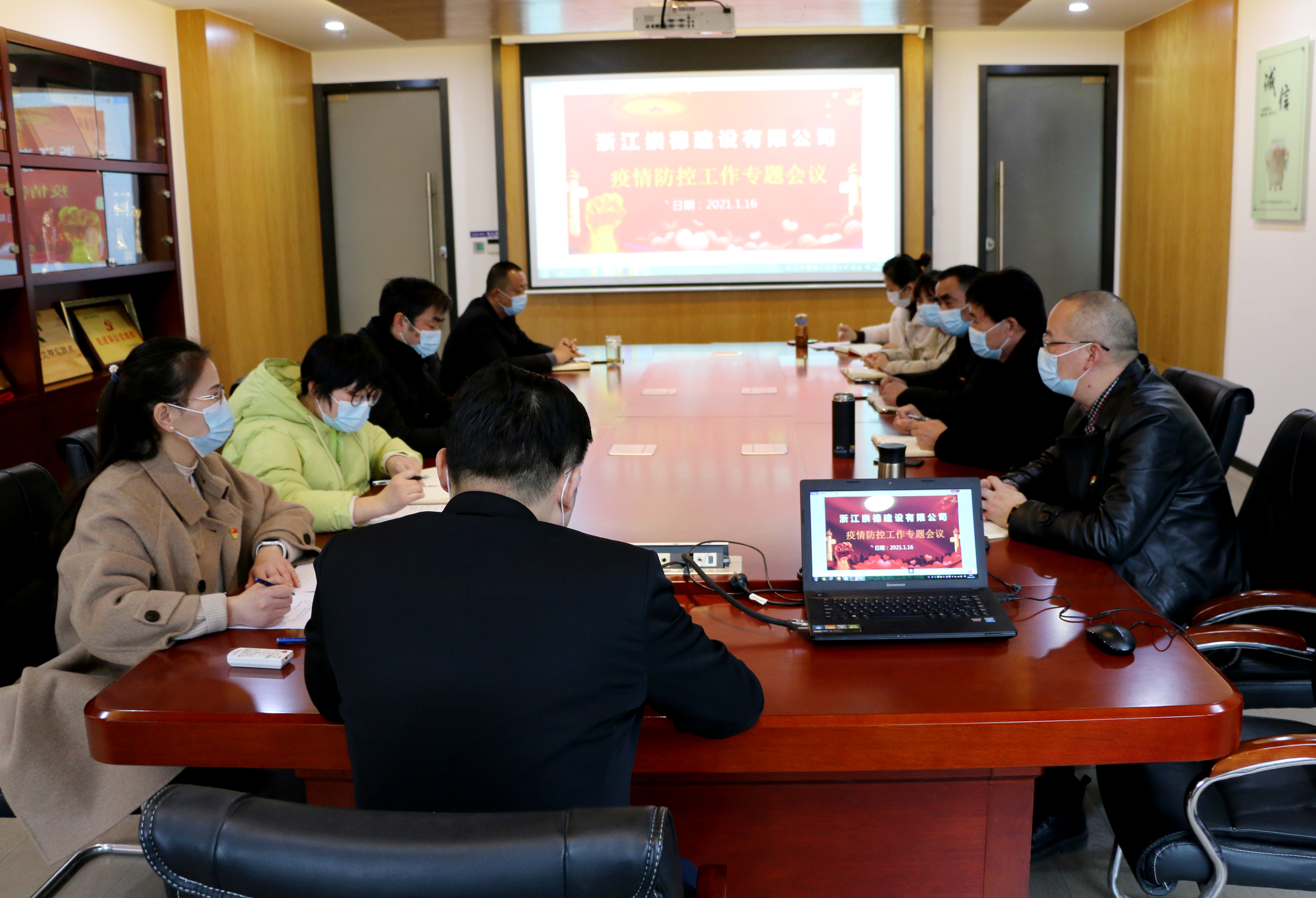當前,中國疫情形勢依然嚴峻復雜,疫情防控面臨重大考驗。為全力以赴做好疫情防控工作,保障安全生產,2021年1月16日下午,浙江崇德建設有限公司在會議室組織召開新冠疫情防控專題會議,對前階段工作進行總結,研究部署當前乃至接下來疫情防控工作重點,提高疫情防控工作的科學性精準性。桐鄉市委組織部委派的黨建指導員吳鑒偉出席會議并講話,公司董事長兼總經理郁振華、各部門負責人等參加。